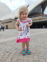 "It was pleasure meeting you and seeing your beautiful work at the Blak Markets. Belated but sincere thanks for sending the lovley dresses so quickly. They arrived on the day of my granddaughter Juliet's third birthday, and she wore her lovely dress to a performacne of Spot at the Opera House. My great-niece who lives in London will be wearing the little red dress in their summer, and her parents love it. Best wishes for the continuing success of your creative work and your company."